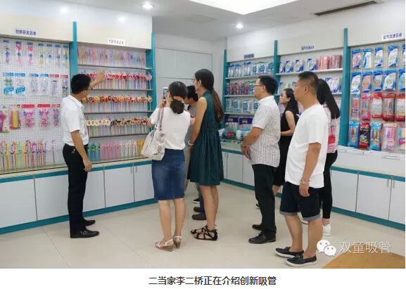 移步樣品房,大家都被琳瑯滿目的各類吸管所吸引。二當家李二橋介紹了一系列他們從沒見過的創(chuàng)新吸管,讓他們驚訝的是,原來一根小小的吸管也有這么多的功能可以開發(fā)。