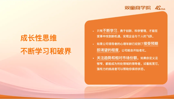 所以,為了帶動企業(yè)成功穿越一個個經(jīng)濟(jì)周期,岳喜偉老師再次向?qū)W員強調(diào)了創(chuàng)業(yè)者要有的成長!