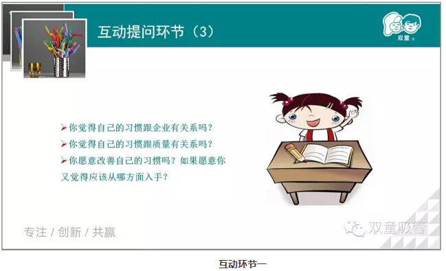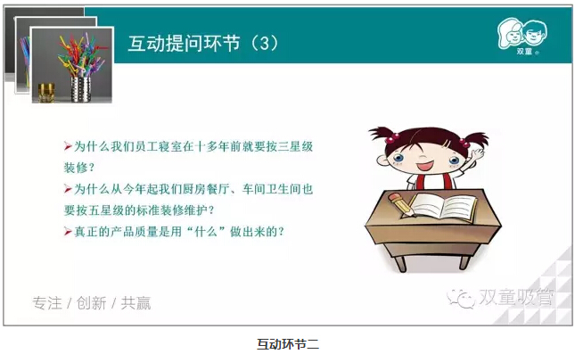 關(guān)于最后一個(gè)問(wèn)題,都不用吸管妞讓大家舉手,大家就已經(jīng)異口同聲地說(shuō)出了答案:真正的產(chǎn)品質(zhì)量是用“心”做出來(lái)的!看來(lái)大家在之前的課程上學(xué)到的知識(shí)都還沒(méi)有忘記呢!點(diǎn)個(gè)贊!