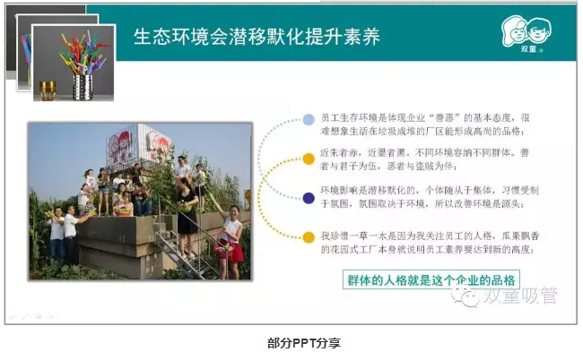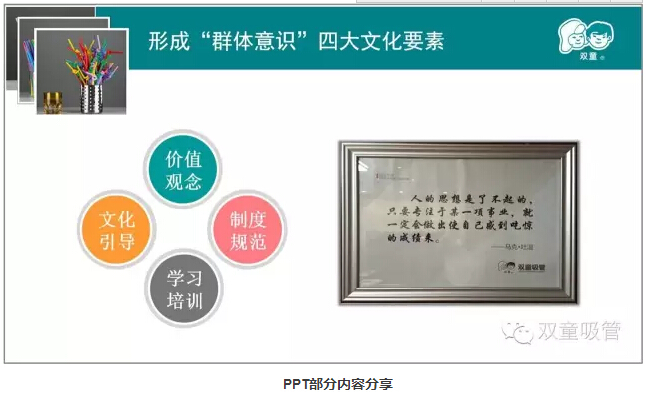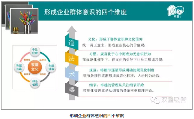 ”雙童“通過(guò)價(jià)值觀(guān)念、學(xué)習(xí)培訓(xùn)、制度規(guī)范、文化引導(dǎo)形成來(lái)影響員工,養(yǎng)成好的行為習(xí)慣!