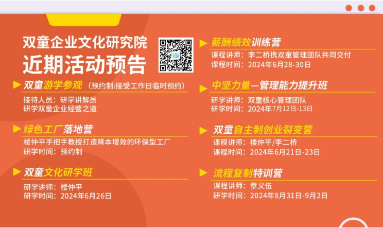 早在2022年,雙童商學(xué)院就針對(duì)該機(jī)制打磨成《自主制創(chuàng)業(yè)裂變營》課程,并不斷地升級(jí)迭代,以助力更多中小企業(yè)也能運(yùn)用這套機(jī)制實(shí)現(xiàn)快速增長!