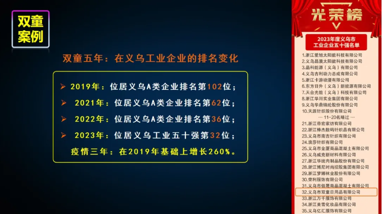 2023年,平臺(tái)整體增長35.24%;平臺(tái)稅收增長23.30%,成功登榜“納稅千萬元以上工業(yè)企業(yè)”和“義烏市工業(yè)企業(yè)五十強(qiáng)”!