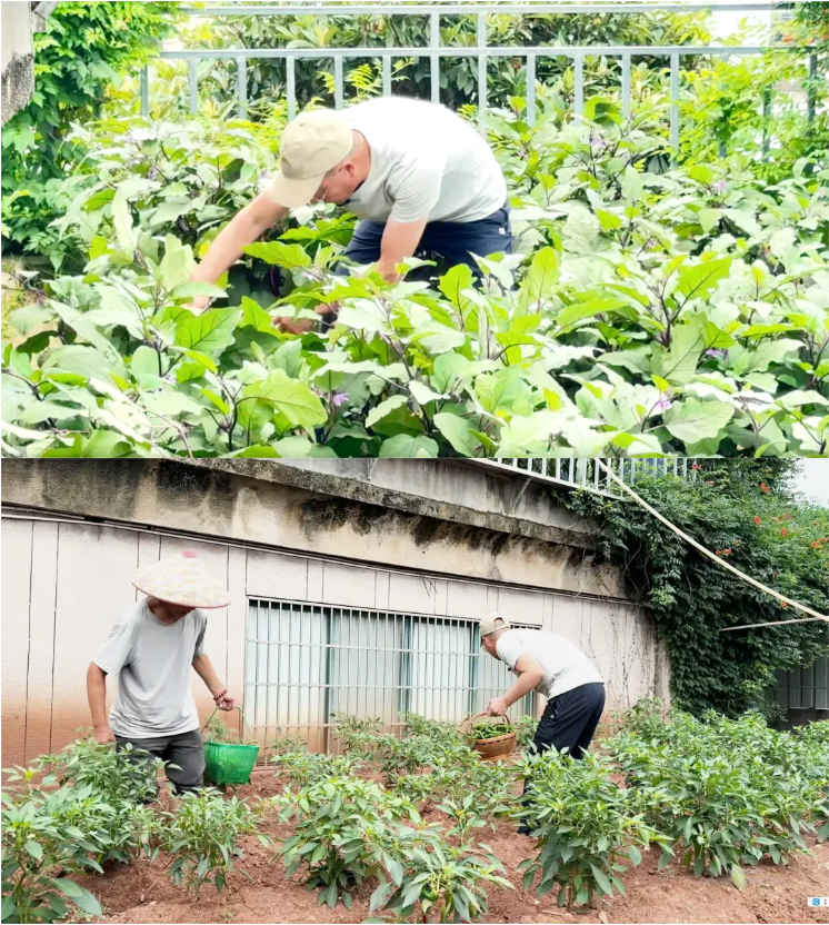 !而且,既然是“蔬菜大放送”,肯定是多多益善了~所以,等到這邊摘得差不多了,樓總又帶著“摘菜小分隊”轉(zhuǎn)移陣地,前往另一個屋頂菜園!