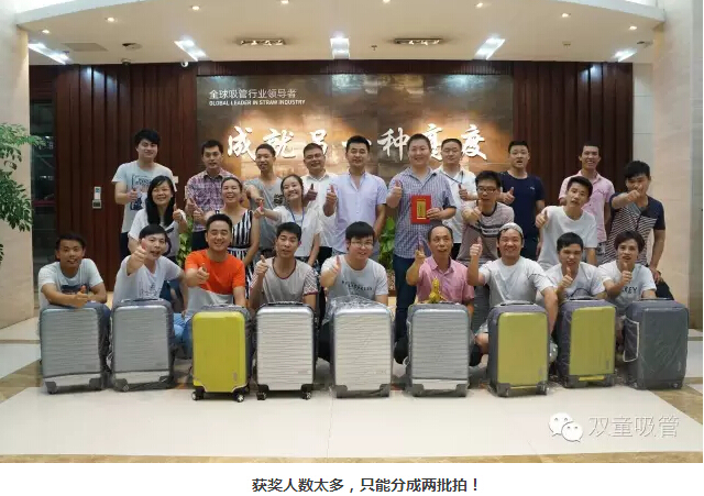 別急別急!妞還將繼續(xù)發(fā)放獎品,吸管創(chuàng)新大賽的所有參賽人員人手一個精美寶麗行李箱呢!是不是很羨慕呀?公司此舉也是為了告訴員工們,只要你參與公司的創(chuàng)新工作,公司的獎勵是大大的!那么接下來,第二屆吸管創(chuàng)新大賽也即將拉開帷幕,有創(chuàng)意的小伙伴們快來告訴吸管妞吧!