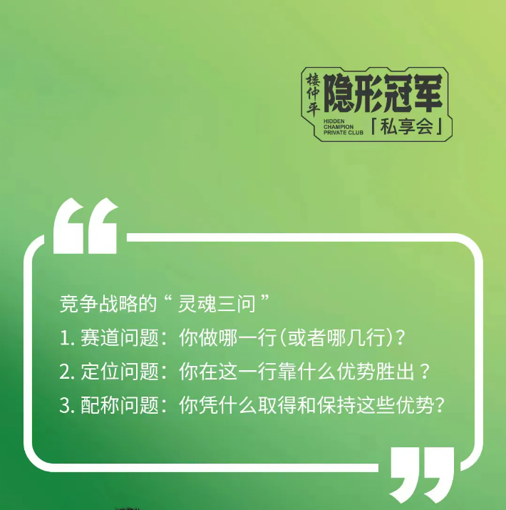 如果你是創(chuàng)業(yè)者、學(xué)習(xí)者、思想者,希望在經(jīng)營領(lǐng)域有自己的思考和洞察,那么《隱形冠軍樓仲平思享薈》就是為你量身定制,今年最后一期招生,一班只招40位同學(xué),名額所剩不多,抓緊機(jī)會哦!