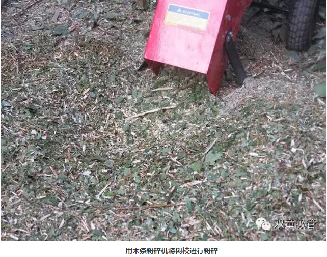 而對園林綠化維護中產(chǎn)生的樹枝枯葉等生物質垃圾,我們則專門購置了一臺木條粉碎機,對生物質垃圾進行粉碎處理。該物四四方方,遍體通紅,上一口,側一口,塞進去的枝葉全都絞碎成粉末,威力可真是大!