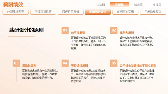 在整個課程交付中,李二橋老師會將課程拆解為認(rèn)知篇、薪酬篇、績效篇和實(shí)操篇等四大板塊,循序漸進(jìn),讓學(xué)員們從對薪酬和績效的認(rèn)知到實(shí)操慢慢過渡。除此之外,李二橋老師還會交付薪酬制定六步法(外部環(huán)境調(diào)查、內(nèi)部自我診斷、崗位價值分析、薪酬結(jié)構(gòu)設(shè)計、方案實(shí)施、年度效果復(fù)盤等);以及績效方案八步驟、銷售提成六方案等實(shí)用性工具。