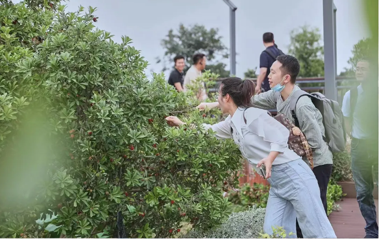 在“雙童”的屋頂花園,種植了二十多品種200多棵果樹,年產(chǎn)近萬斤的水果!光琵琶、桃、梨、李、杏、橘、柚就有120棵,楊梅樹甚至都可以掛果兩千斤,重點是:所有水果全部與員工分享,一個不賣。