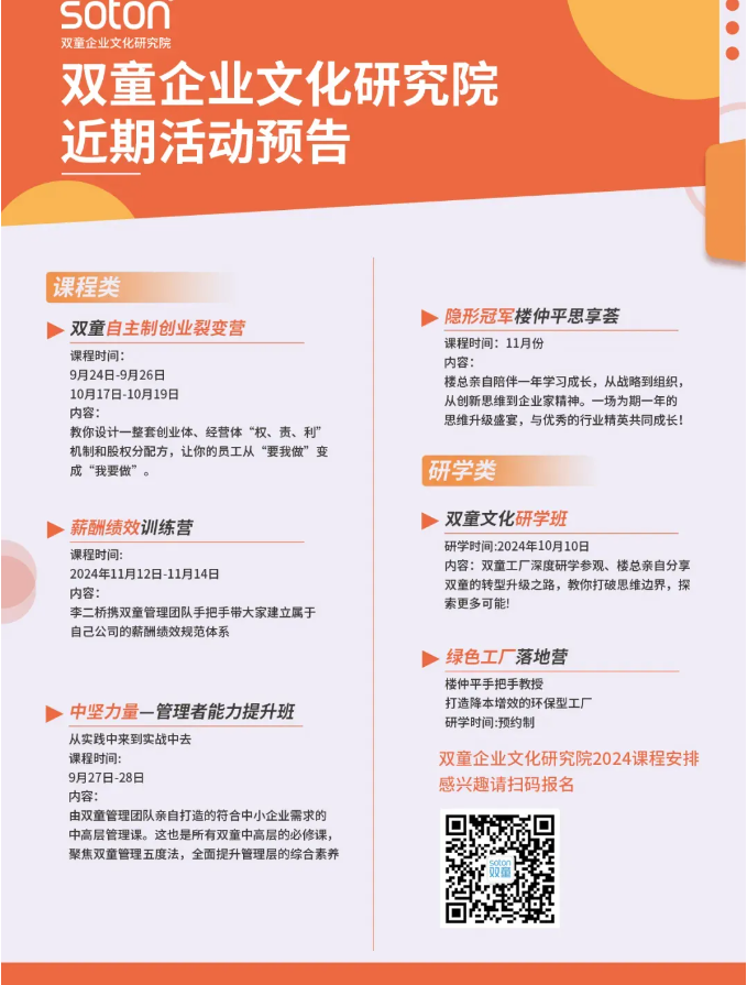但是,雙童能有如此干凈整潔的環(huán)境還真不是靠阿姨打掃出來(lái)的。因?yàn)橐粋€(gè)工廠、一個(gè)生產(chǎn)型企業(yè),真正的精細(xì)化,它絕無(wú)可能是靠大量的工作人員維護(hù)出來(lái)。雙童的衛(wèi)生是每一個(gè)人自律的結(jié)果。