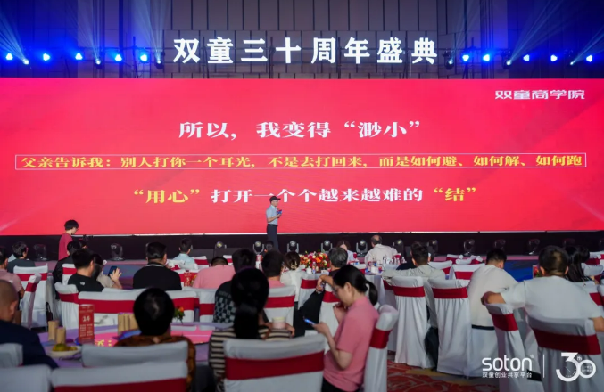 雞毛換糖的經(jīng)歷,也鍛煉了他的定力,讓他不再“一山望過(guò)一山高”。分享一開(kāi)始樓總就告訴大家:“雙童能堅(jiān)持30年,不是我心放大了,而是心放小了,不是因?yàn)槲业男坌膲阎?,而是因?yàn)槲业娜缏谋”?,因?yàn)樾姆判×?,才有足夠的定力,把最難做的吸管行業(yè)一直堅(jiān)持下去。