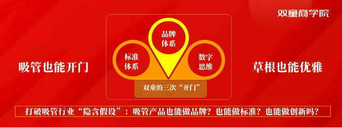 2015年之后,雙童已然成為行業(yè)“天花板”,在形勢一片大好時,他再次選擇“破界創(chuàng)新”,毅然帶領(lǐng)雙童突破“一根吸管”的局限,不斷嘗試摸索,獨創(chuàng)了一套適合中小企業(yè)的裂變增長的創(chuàng)新模式。