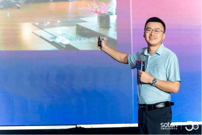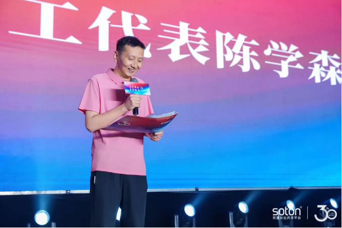 雙童三十周年慶典儀式上,員工代表陳學(xué)森上臺(tái)分享
