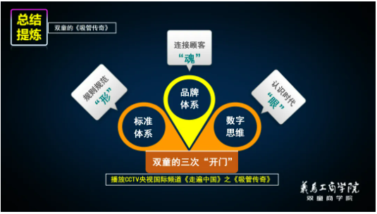 前文所述的雙童先后三次“開(kāi)門”的經(jīng)歷只是《雙童文化研學(xué)班》創(chuàng)始人樓仲平主題課程分享的精彩片段。分享介紹后,樓總還將以問(wèn)答互動(dòng)的形式為學(xué)員們解答參觀過(guò)程中疑惑、或者企業(yè)發(fā)展中遇到的問(wèn)題,讓大家在研學(xué)活動(dòng)中避免走馬觀花,真正找到“雙童”經(jīng)營(yíng)過(guò)程中的科學(xué)管理邏輯,實(shí)現(xiàn)創(chuàng)業(yè)思維的升階!
