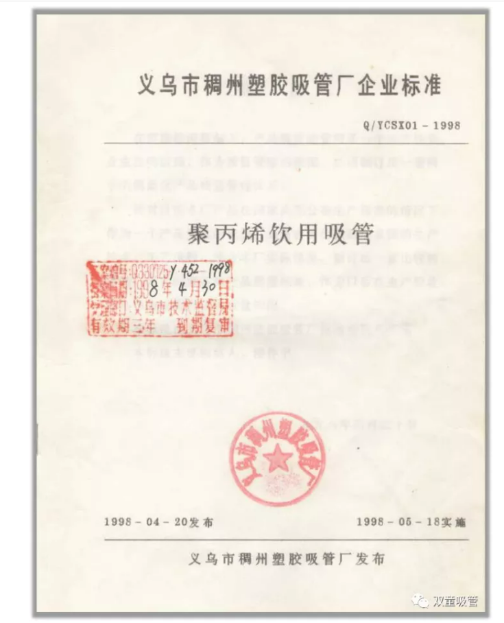 中國(guó)吸管行業(yè)最早的企業(yè)標(biāo)準(zhǔn)