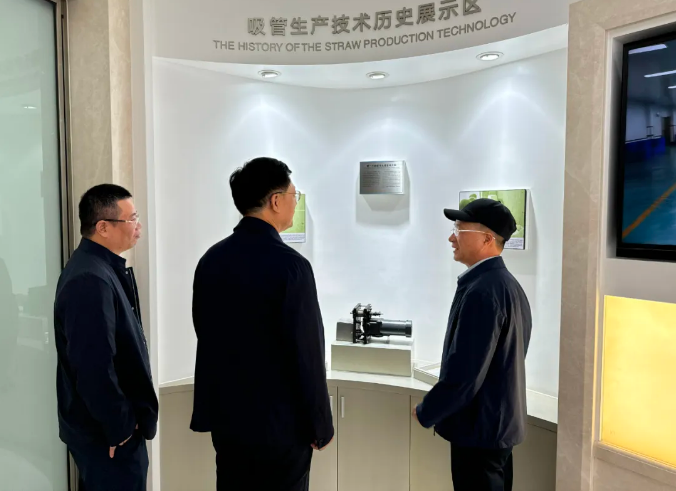 創(chuàng)始人樓仲平為領(lǐng)導們介紹“雙童”的吸管標準文件