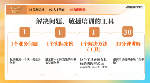 清晰的發(fā)展路徑能夠增加員工留下來(lái)的意愿。所以程老師建議管理者們建立完善的員工發(fā)展云梯,比如按照專業(yè)管理、專業(yè)技術(shù)、生產(chǎn)操作和業(yè)務(wù)等不同類別設(shè)計(jì)清晰的上升路徑。同時(shí)在新人上升的不同階段,要及時(shí)給與對(duì)應(yīng)的幫扶與賦能。程老師也在課上給到了實(shí)際操作方法和“11130”模型培訓(xùn)神器,讓同學(xué)們隨學(xué)隨用。