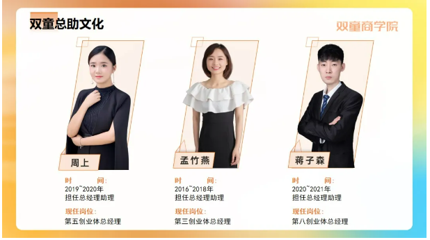 而且,在雙童,周上老師的成功不是特例,類似的成功案例,不勝枚舉:憑借一己之力成為雙童招聘“半壁江山”的蘇紀(jì)林、從基層一線員工成為總經(jīng)理的李二橋……