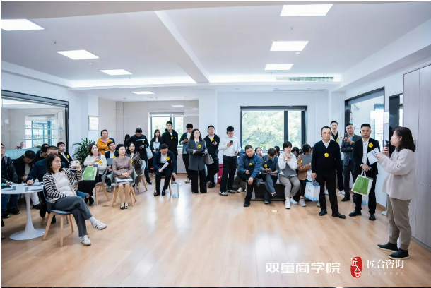 本周,雙童商學(xué)院又迎來了一批特別的參訪者——來自匠合咨詢的同學(xué)們,由劉育良老師親自帶隊(duì)。之所以說特別,是因?yàn)榻澈献稍兒碗p童商學(xué)院本身就是親密的合作伙伴,劉玉良老師更是《自主制創(chuàng)業(yè)裂變營》課程老師,所以此次雙童之旅,讓同學(xué)們倍感親切。
