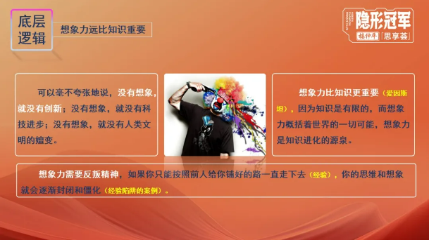 人類(lèi)區(qū)別于動(dòng)物的根本所在不僅是人類(lèi)會(huì)應(yīng)用知識(shí)和工具,更重要的是人類(lèi)對(duì)知識(shí)的本身有深刻的認(rèn)識(shí)和思考。所以在接下來(lái)的課程中,樓老師為同學(xué)們?cè)敿?xì)介紹了能夠幫助創(chuàng)業(yè)者認(rèn)知成長(zhǎng)的三種方法:好奇心、想象力、批判精神。