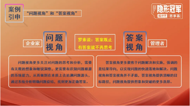 所以,比“事實(shí)”更重要的,是對(duì)事實(shí)的認(rèn)知和運(yùn)用抽象邏輯思考的方式。創(chuàng)業(yè)者在經(jīng)營(yíng)企業(yè)的過(guò)程中,要學(xué)會(huì)用“問(wèn)題視角”去思考分析,用審慎的態(tài)度去觀察、審視、質(zhì)疑、提問(wèn)、追問(wèn)后做出明智的判斷。