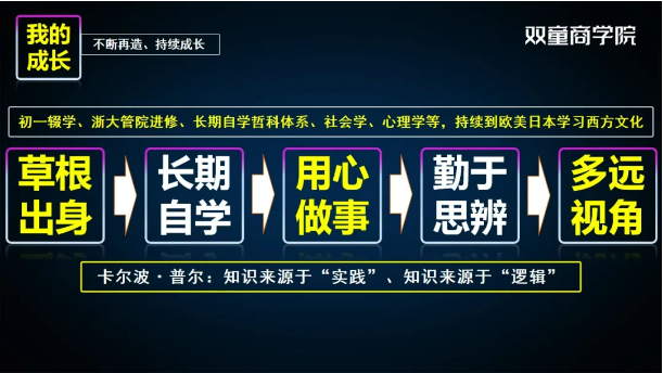 而且幾乎所有的管理學(xué)家都在研究大企業(yè),少有人關(guān)注小企業(yè),所以他希望雙童商學(xué)院能更多的服務(wù)于中國(guó)的中小民營(yíng)企業(yè)!