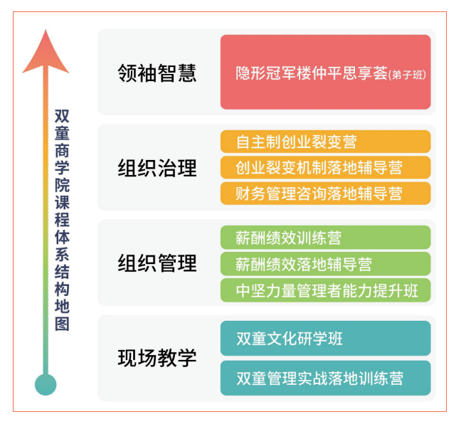 為了能給中小民營(yíng)企業(yè)提供最具實(shí)效性的課程體驗(yàn),雙童商學(xué)院還精心打造了一套以思維升級(jí)為驅(qū)動(dòng)、以實(shí)戰(zhàn)落地為導(dǎo)向的課程體系,課程主要分為四大模塊,每個(gè)模塊都緊密結(jié)合企業(yè)實(shí)際操作,確保企業(yè)在快速變化的市場(chǎng)環(huán)境中保持領(lǐng)先地位,實(shí)現(xiàn)個(gè)人與企業(yè)共同成長(zhǎng)。