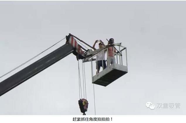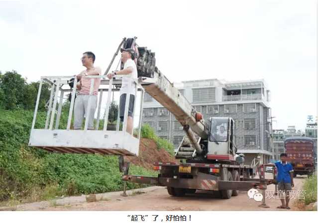 周一的清晨,當(dāng)家人樓總早早地就來到了公司,而在公司門口,還停著一輛大吊機!用吸管君的話說,這是要搞事情啊!果然,不一會兒,幾個拿著專業(yè)攝影機的攝影師也來到了公司,大家伙一起來到了“雙童”的斜對面,當(dāng)家人說,我們要隔著北苑路這條大馬路,借助近50米高的大吊機,拍攝“雙童”廠房全景!