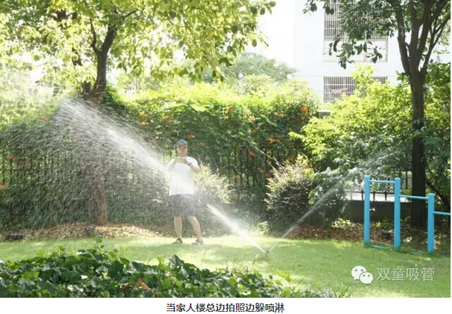 終于拍攝完畢,當(dāng)家人樓總和攝影師們滿意地回到了公司。正值大草坪上正在用噴淋給綠化植物澆水,當(dāng)家人也“雅興大發(fā)”,和攝影師跑入大草坪中,不惜濕身也要拍攝綠化照片!而看到這樣做任何事情都“精益求精”的當(dāng)家人,“雙童”員工們怎么敢對工作馬馬虎虎敷衍了事呢?