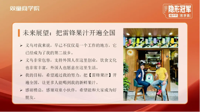 雷鋒老師告訴同學(xué)們,截至目前,“雷鋒果汁”已成功開設(shè)了七家分店,且其業(yè)務(wù)持續(xù)繁榮的背后,主要得益于四大核心推動(dòng)因素: