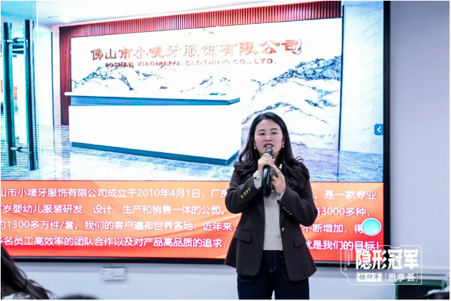 中國(guó)制造在廣東,廣東制造看佛山。因此,第二站校友們來(lái)到了思享薈三期學(xué)習(xí)委員黃新燕同學(xué)的企業(yè)——佛山市小嘜牙服飾有限公司。這家自2014年創(chuàng)立的企業(yè),專(zhuān)注于加工、制造、銷(xiāo)售:服飾、服裝、鞋、帽、襪、小飾物;貨物進(jìn)出口,技術(shù)進(jìn)出口等業(yè)務(wù)。在距離小嘜牙尚有數(shù)百米之遙的地方,校友們便遠(yuǎn)遠(yuǎn)地望見(jiàn)了黃新燕同學(xué)精心準(zhǔn)備的迎賓牌。而作為此次活動(dòng)的東道主,小嘜牙團(tuán)隊(duì)早已提前在幾百米開(kāi)外的路邊引導(dǎo)歡迎,滿(mǎn)懷期待地等待著大家的到來(lái)。他們的熱情和周到,為這次相聚增添了一份特別的溫馨與隆重。踏入小嘜牙,校友們不僅親眼見(jiàn)證了童裝生產(chǎn)的全鏈條運(yùn)營(yíng)流程,還深入探討了小嘜牙在數(shù)智化轉(zhuǎn)型道路上的探索和實(shí)踐,特別是如何在海量款式面前,運(yùn)用信息化系統(tǒng)實(shí)現(xiàn)數(shù)據(jù)的精準(zhǔn)管理。在參觀中,黃新燕同學(xué)告訴大家在公司經(jīng)營(yíng)遇到困難時(shí),她開(kāi)始主動(dòng)出來(lái)學(xué)習(xí)。2023年,她關(guān)注了樓老師一整年的視頻,今年1月參加了《自主制創(chuàng)業(yè)裂變營(yíng)》學(xué)習(xí),8月份開(kāi)始了《薪酬績(jī)效訓(xùn)練營(yíng)》學(xué)習(xí),這兩個(gè)實(shí)戰(zhàn)類(lèi)的課程,幫助她解決了很多的公司管理痛點(diǎn)。