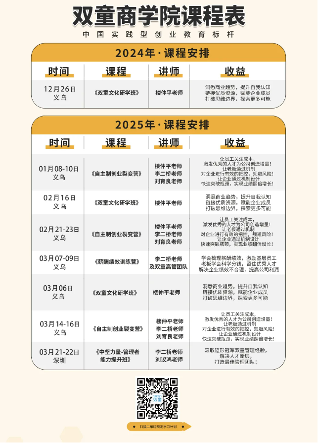 如果你也對“雙童”充滿好奇,也想賦能團隊共同成長,歡迎走進12月26日【雙童文化研學班】,與上百位優(yōu)秀的創(chuàng)業(yè)者一起學習,也是年前最后一期,抓住機會哦!
