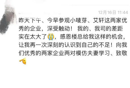 樓仲平老師還感慨道:他看到小濤身上流露出的那份堅(jiān)韌不拔,仿佛映照出二十多年前的自己。同時(shí),此次盟鵬搬遷后的嶄新面貌,不禁眼前一亮,不僅在基礎(chǔ)管理的層面實(shí)現(xiàn)了顯著的提升,現(xiàn)場管理更是煥然一新。本次來到盟鵬研學(xué)交流,所目睹的一連串驚喜變化,遠(yuǎn)遠(yuǎn)超出了大家的預(yù)期。希望盟鵬團(tuán)隊(duì)在2025年能夠迸發(fā)出更強(qiáng)大的活力與激情,實(shí)現(xiàn)業(yè)績的飛躍和管理上的持續(xù)優(yōu)化!
