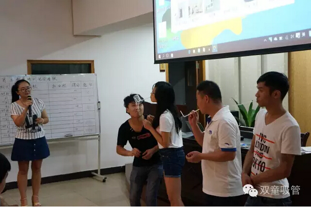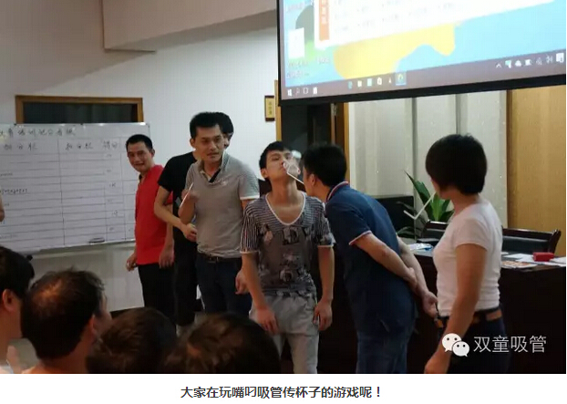 先不講PPT,玩游戲?啥游戲?往下看你就知道啦!現(xiàn)場被分為兩組,大伙用嘴叼著吸管傳杯子。用時(shí)最短的是同一車間較為熟悉的團(tuán)隊(duì),他們在游戲前經(jīng)過溝通協(xié)商,可見團(tuán)隊(duì)協(xié)作的重要性呢!