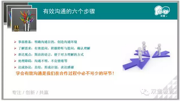 簡單地說,凝成團(tuán)隊(duì)的方式就是合作,團(tuán)隊(duì)精神的核心實(shí)際上就是合作的精神??梢哉f,合作關(guān)系到每個(gè)人在團(tuán)隊(duì)中的角色,有著至關(guān)重要的作用。而在團(tuán)隊(duì)合作中,溝通也是必不可少的,管理者最有效的工作就是溝通、溝通、再溝通!下面妞就把有效溝通的六個(gè)方式的干貨放上來與大家共享!
