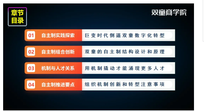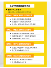 他以雙童內(nèi)部對裂變機(jī)制的實際運(yùn)行狀況為案例教材,將課程分為五大模塊,16個小節(jié),涵蓋了落地實操環(huán)節(jié)中會遇到的各種問題,盡可能最詳細(xì)、最全面地交付給學(xué)員操作方法!
