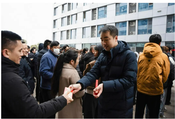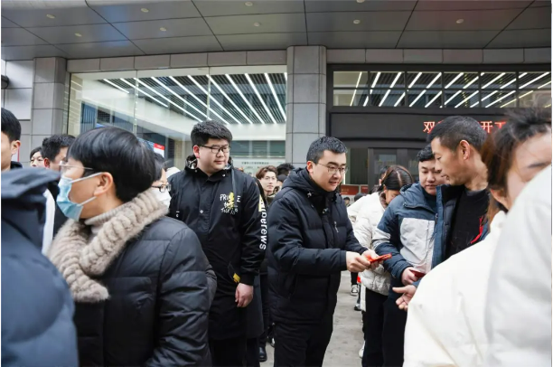 為感謝大家準時返崗、全力支持生產(chǎn),也為新的一年討個好彩頭,按照傳統(tǒng),雙童特意為員工準備了“大吉大利”開工紅包!并由多位總經(jīng)理親自將紅包派發(fā)到大家手上,同時也送上他們最真摯的新年祝福!