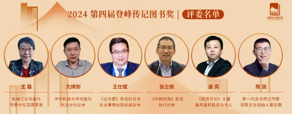 該榮譽由機械工業(yè)出版社華章分社首席策劃王磊、華中科技大學(xué)出版社大眾分社社長亢博劍、《企業(yè)家》雜志社社長/企業(yè)管理出版社副社長王仕斌、《中國民商》雜志執(zhí)行社長張立棟、《商界評論》主編/重慶盈科投資合伙人唐亮、新一代企業(yè)傳記作家/潤商文化創(chuàng)始人兼總裁陳潤等專業(yè)人士擔任評委,共同評選見證,含金量超高!