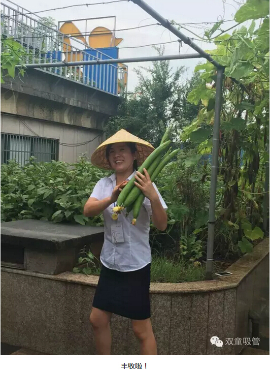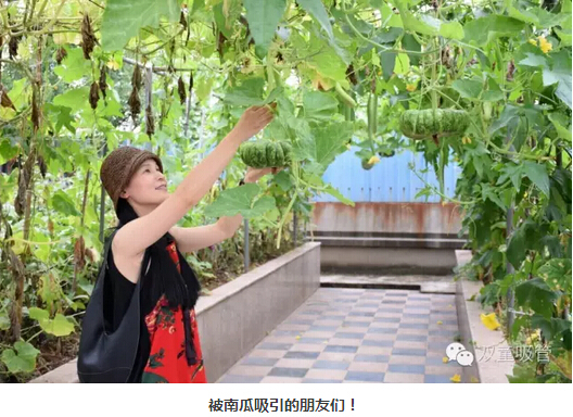 這樣的場(chǎng)景總會(huì)吸引來“雙童”參觀的朋友們駐足觀賞,拍照留念,贊嘆屋頂菜園的瓜果!