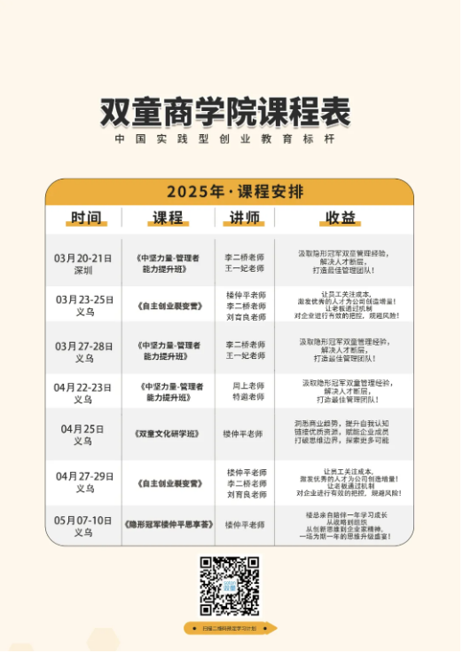 然而,樓仲平并不滿足于此,他將目光投向了更廣闊的文化產(chǎn)業(yè)與教育領(lǐng)域。他創(chuàng)立雙童商學(xué)院,致力于培養(yǎng)具有全球視野、創(chuàng)新精神和實戰(zhàn)能力的企業(yè)家和高管人才的非營利性教育機(jī)構(gòu)。