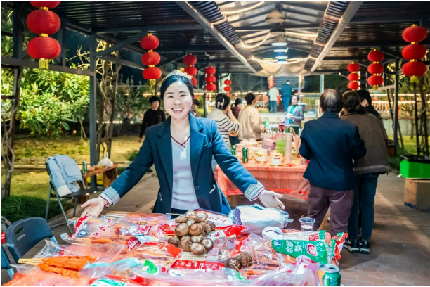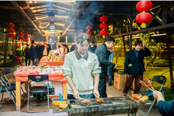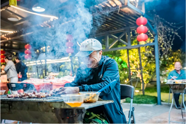 接下來,就輪到我們的燒烤師傅登場(chǎng)了!隨著肉串在火焰上漸漸變得金黃誘人,空氣中彌漫著令人垂涎的烤肉香。熊熊燃燒的火焰與大家高漲的熱情讓現(xiàn)場(chǎng)氣氛熱烈非凡,整個(gè)空中生態(tài)園都沉浸在這份歡樂和溫暖之中。