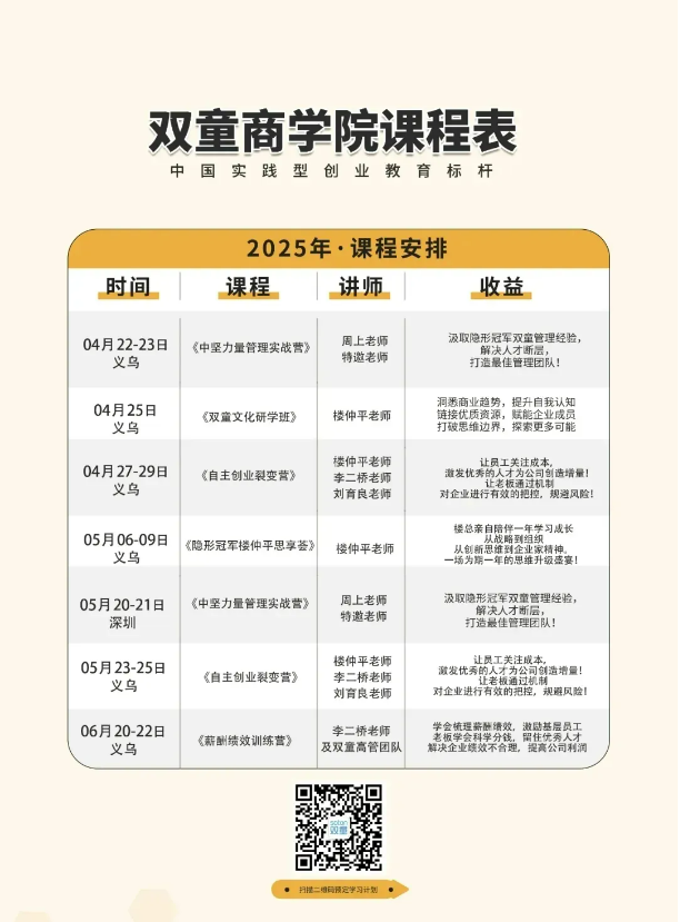 所以,雙童商學(xué)院早在2022年,雙童商學(xué)院就針對(duì)該機(jī)制打磨成《自主創(chuàng)業(yè)裂變營》課程,并不斷地升級(jí)迭代,該課程已經(jīng)是一套非常成熟的、可復(fù)制、可實(shí)踐的課程,完全契合中小微創(chuàng)業(yè)者的需求。也賦能了2800+學(xué)員企業(yè)成長(zhǎng)!好評(píng)反饋不斷!