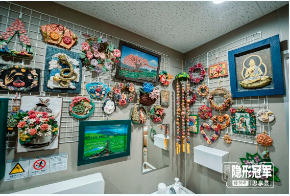 此外,車間內(nèi)沒(méi)有絲毫多余的雜物,工序之間通過(guò)透明簾子分隔成獨(dú)立空間,而貨架上的物品則用窗簾遮擋,整體環(huán)境顯得整齊干凈、井然有序,體現(xiàn)了小而精致的美學(xué)理念。