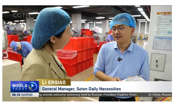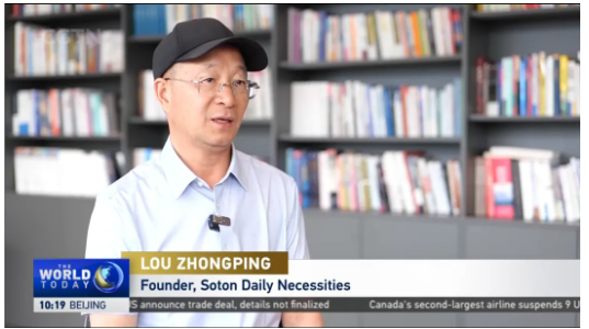 央視CGTN記者也走進(jìn)雙童,實地采訪董事長樓仲平和總經(jīng)理李二橋。巧合的是,采訪當(dāng)天,雙童的美國訂單正在重啟生產(chǎn)發(fā)貨計劃。
