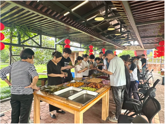 今年后勤部門也是早早地為大家準(zhǔn)備好了各種粽子餡料,肥糯五花肉、寓意高中的狀元豆… 統(tǒng)統(tǒng)安排上啦!滿足五湖四海的雙童人口味,全都真材實(shí)料看得見!
