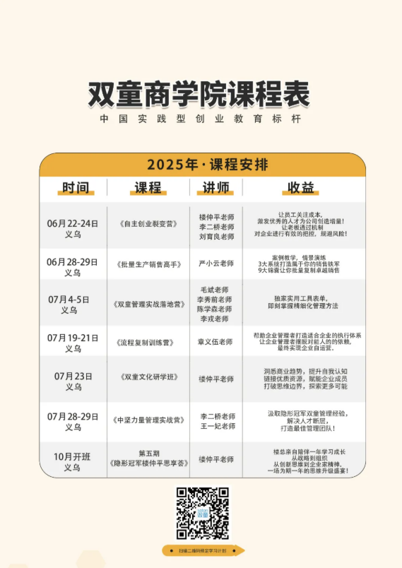 如果你也對“雙童”充滿好奇,也想賦能團(tuán)隊共同成長,歡迎走進(jìn)7月23日【雙童文化研學(xué)班】,與上百位優(yōu)秀的創(chuàng)業(yè)者一起學(xué)習(xí)!少量名額,歡迎咨詢鎖定!