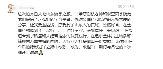“弟子班”永不畢業(yè),持續(xù)成長!6月20-21日,隱形冠軍樓仲平思享薈舉行山東校友會研學(xué)專場,1-5期“弟子班”中的40多位同學(xué)一同成行。