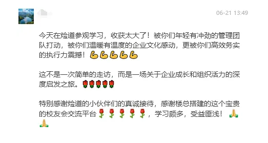 從燴道辦公區(qū)域墻壁上的核心價值觀,到生產(chǎn)一線精準(zhǔn)執(zhí)行的管理細(xì)則,大家直觀感受到了“以奮斗者為本”的理念如何滲透到企業(yè)肌理、融入日常運(yùn)營;通過觀摩一線車間的操作與管理流程,研學(xué)標(biāo)準(zhǔn)化在提高生產(chǎn)效率、保障產(chǎn)品品質(zhì)中的重要作用。