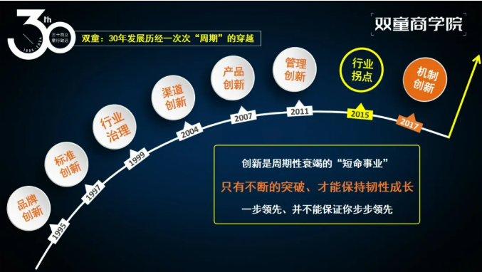 企業(yè)成長的背后是創(chuàng)業(yè)者的持續(xù)成長,雙童能夠一次次成功穿越周期的背后,正是創(chuàng)始人樓仲平個人持續(xù)成長、自我進化、行知合一的結(jié)果!所以每次的分享中,他都將自己47年的持續(xù)成長歷程作為第一篇章內(nèi)容。