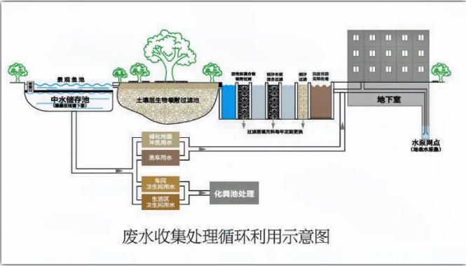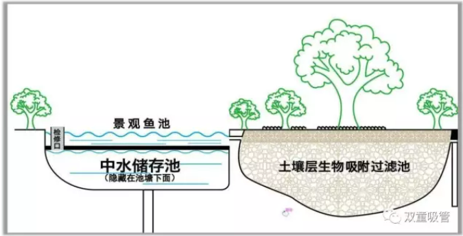 從結構上看,該景觀池采用分層式設計:上層為1米多深的生態(tài)觀賞區(qū),供人觀賞與休憩;下層則是深達4.5米的中水儲水池,承擔著廢水儲存與再利用的重任,默默履行著水循環(huán)利用的重要使命。這種創(chuàng)新的雙層結構,既確保了景觀效果,又實現了水資源的最大化利用。
