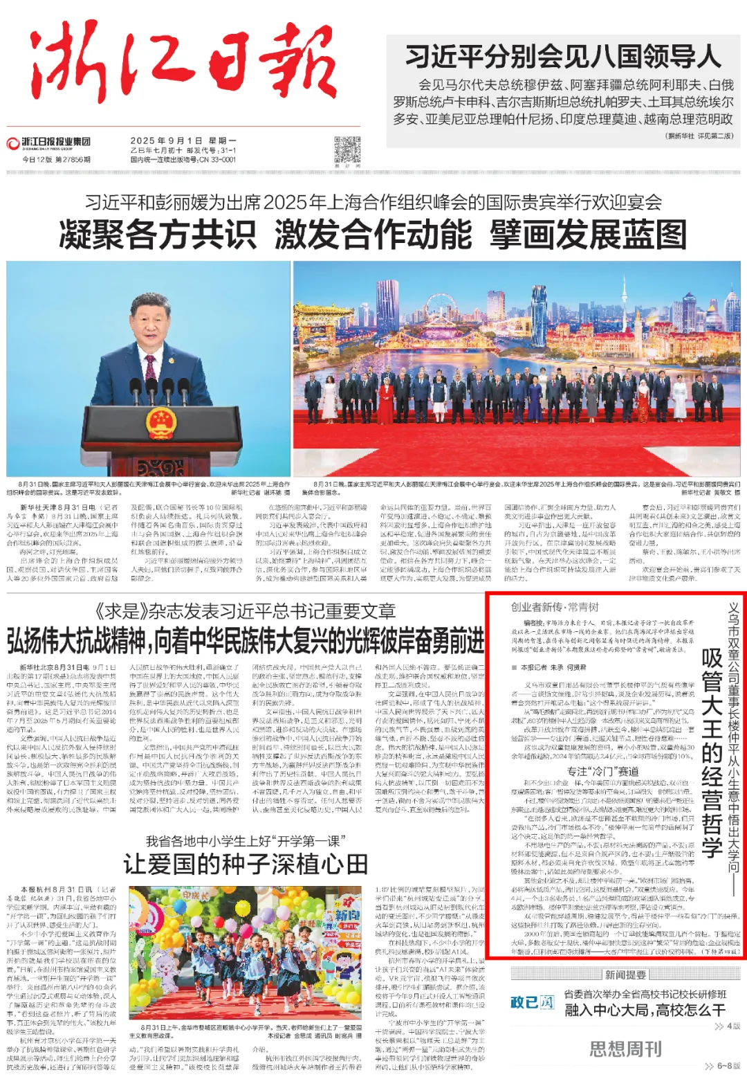 市場(chǎng)活力來(lái)自于人,尤其來(lái)自于企業(yè)家,來(lái)自企業(yè)家精神。近日,創(chuàng)始人樓仲平受邀作為《浙江日?qǐng)?bào)》“創(chuàng)業(yè)者新傳·常青樹(shù)”系列的首發(fā)專訪對(duì)象,分享了其47年創(chuàng)業(yè)歷程中所積累的經(jīng)驗(yàn)與管理智慧。報(bào)道一經(jīng)發(fā)布,還獲多家媒體于第一時(shí)間轉(zhuǎn)載,引發(fā)社會(huì)各界廣泛關(guān)注。